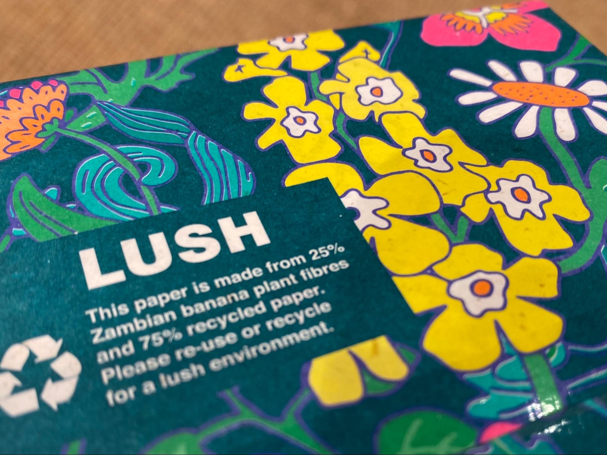 実は、バナナペーパーはさまざまなブランドで採用されています。たとえばLUSHでは、パッケージの一部にバナナペーパーを使用。コスメだけでなく、パッケージまで一貫してエシカルであることを大切にしています。