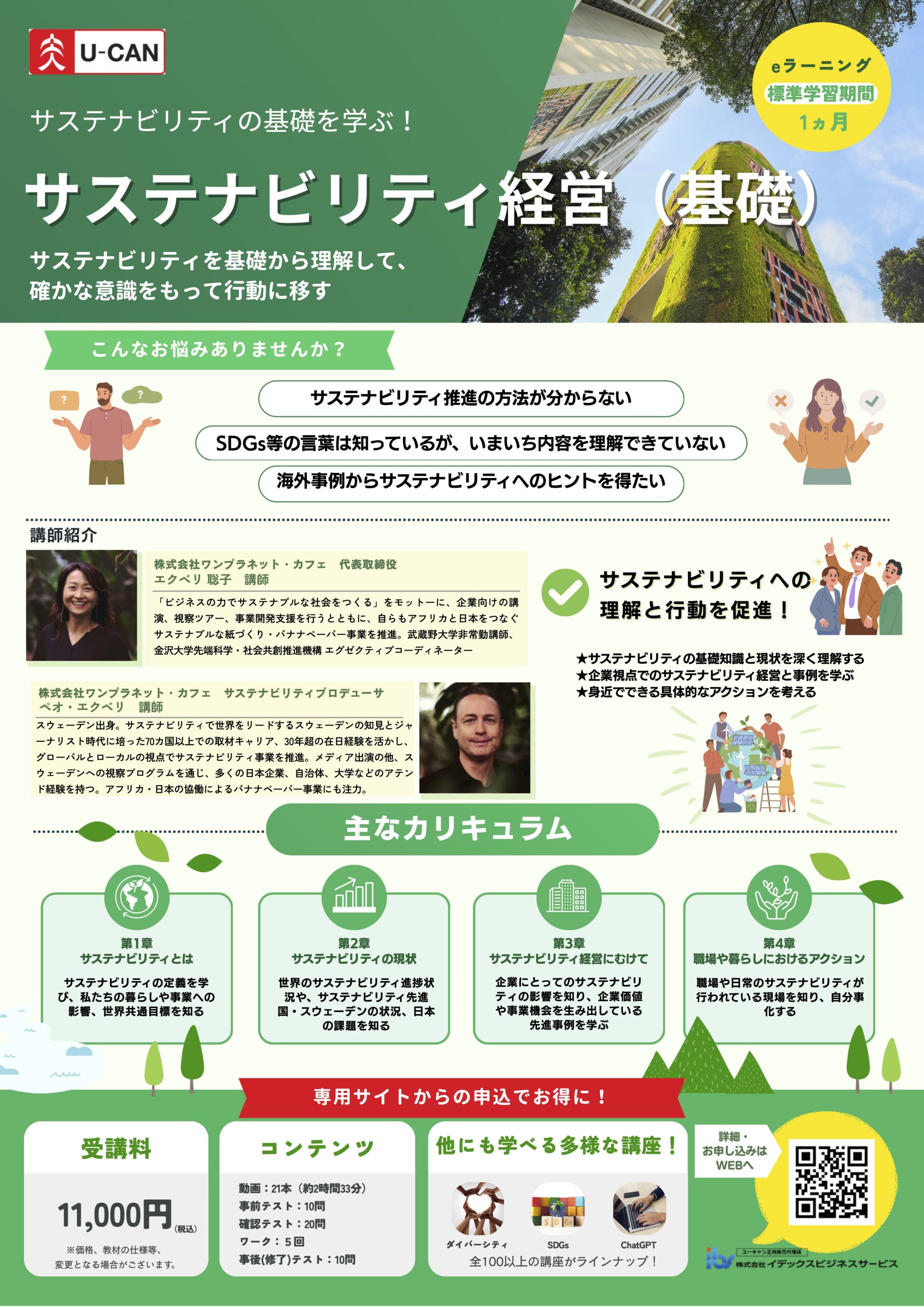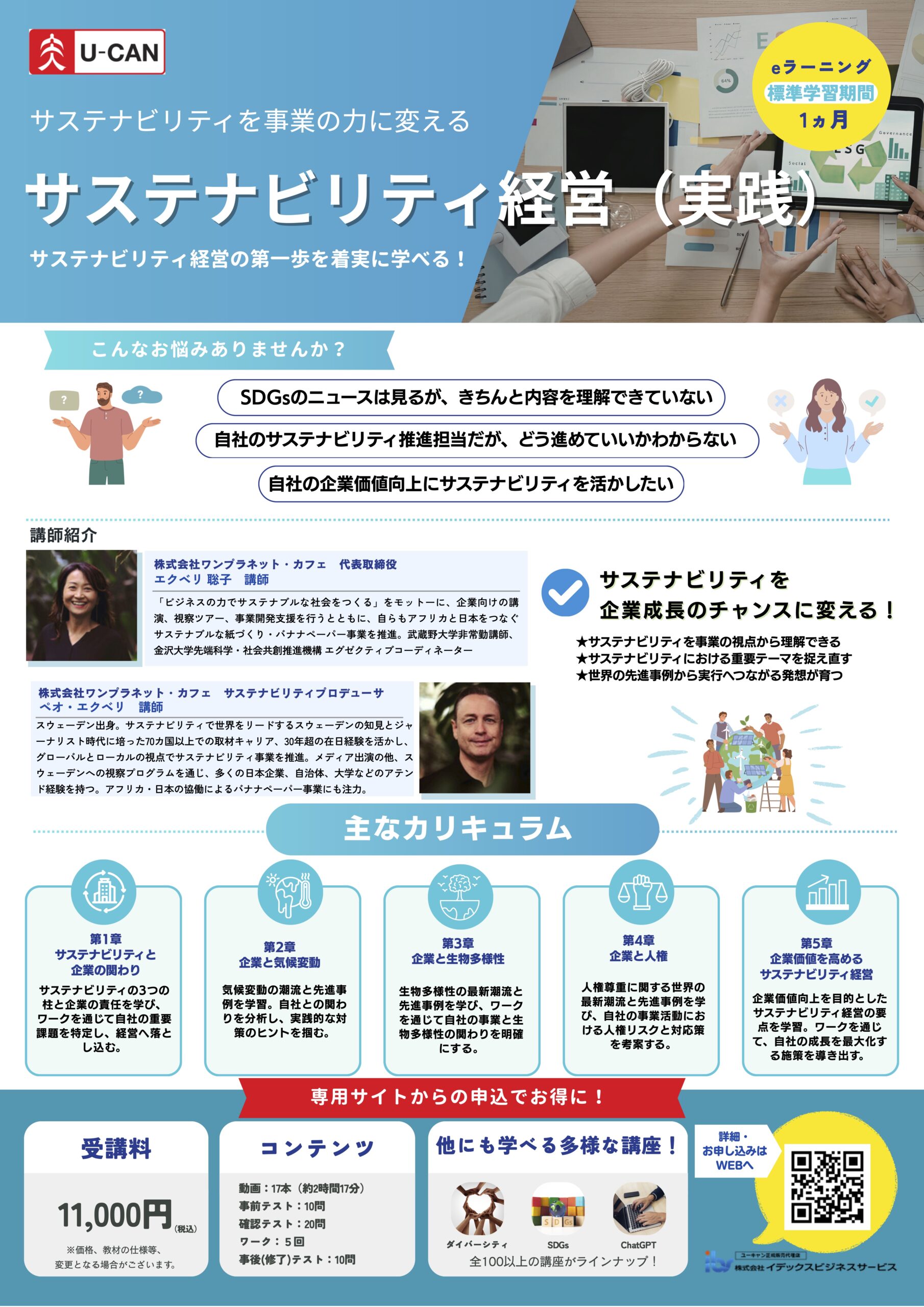 この度、ユーキャン法人向けeラーニングにて開講した「サステナビリティ経営(基礎)」講座に加え、「サステナビリティ経営(実践)」講座を開講いたしました。